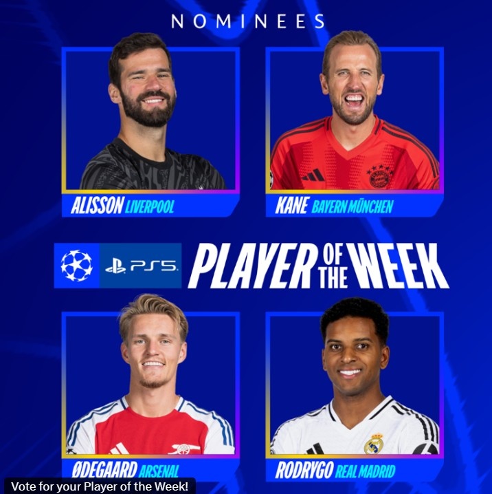 2025-03-06 13:11:45歐冠官方本輪最佳球員候選:阿利森、凱恩、羅德里戈、厄德高