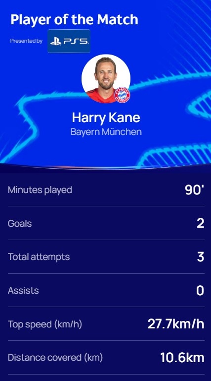 2025-03-06 13:16:00梅開二度!歐冠官方:凱恩當選拜仁3-0勒沃庫森全場最佳