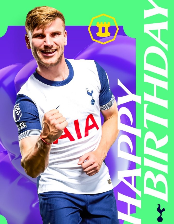 2025-03-06 19:12:13維爾納迎29歲生日,熱刺官方曬海報送上生日祝福