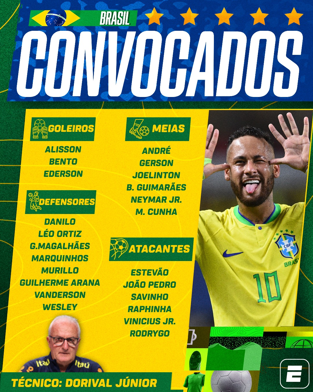 2025-03-06 22:40:16將戰(zhàn)阿根廷!巴西新一期名單:內(nèi)馬爾時隔1年半回歸!安東尼無緣