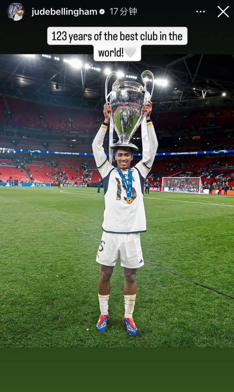 2025-03-07 01:30:22貝林曬高舉歐冠獎(jiǎng)杯照片祝賀皇馬:世界上最好的球隊(duì)123歲了!
