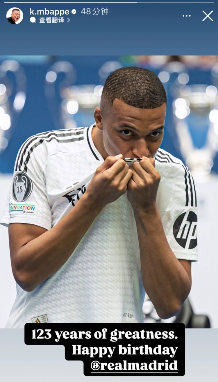 2025-03-07 06:42:40姆巴佩祝賀皇馬成立123周年:123年的偉大歷史,皇馬生日快樂