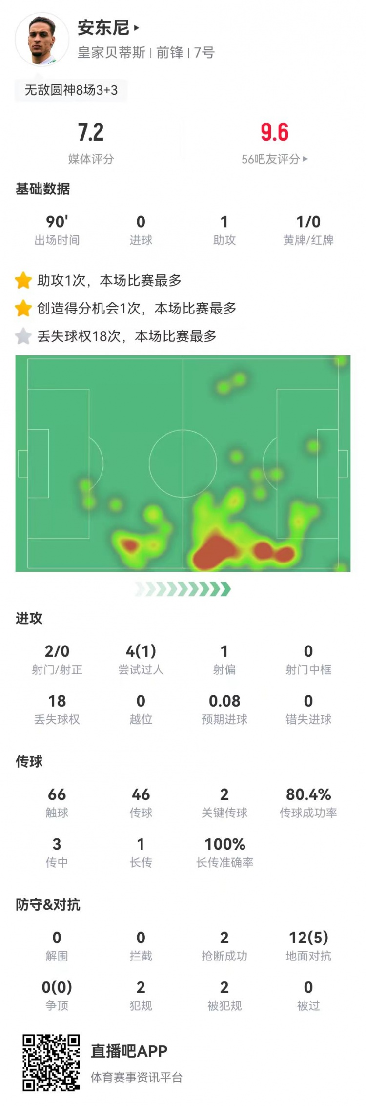 2025-03-07 06:43:08安東尼本場(chǎng)1助攻2關(guān)鍵傳球 12對(duì)抗5成功+18丟失球權(quán) 2搶斷2造犯規(guī)