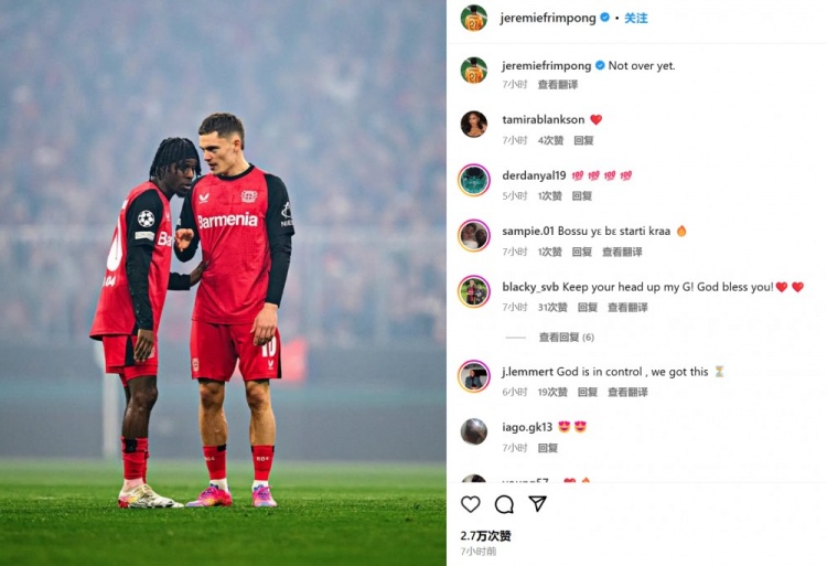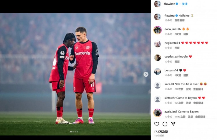被換下后情緒激動!維爾茨&弗林蓬雙雙發文:還有半場,尚未結束