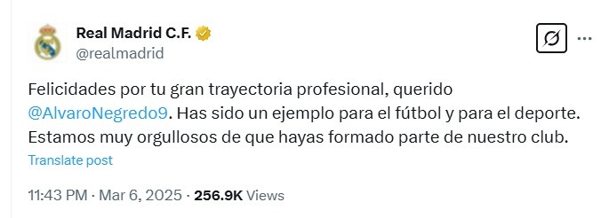 2025-03-07 14:41:05皇馬官方:祝賀內格雷多有著偉大的生涯,為你曾是我們一員而自豪