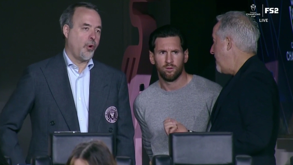 2025-03-07 14:45:05今日休息不出場,梅西傷缺在場邊觀戰,新發型清清爽爽