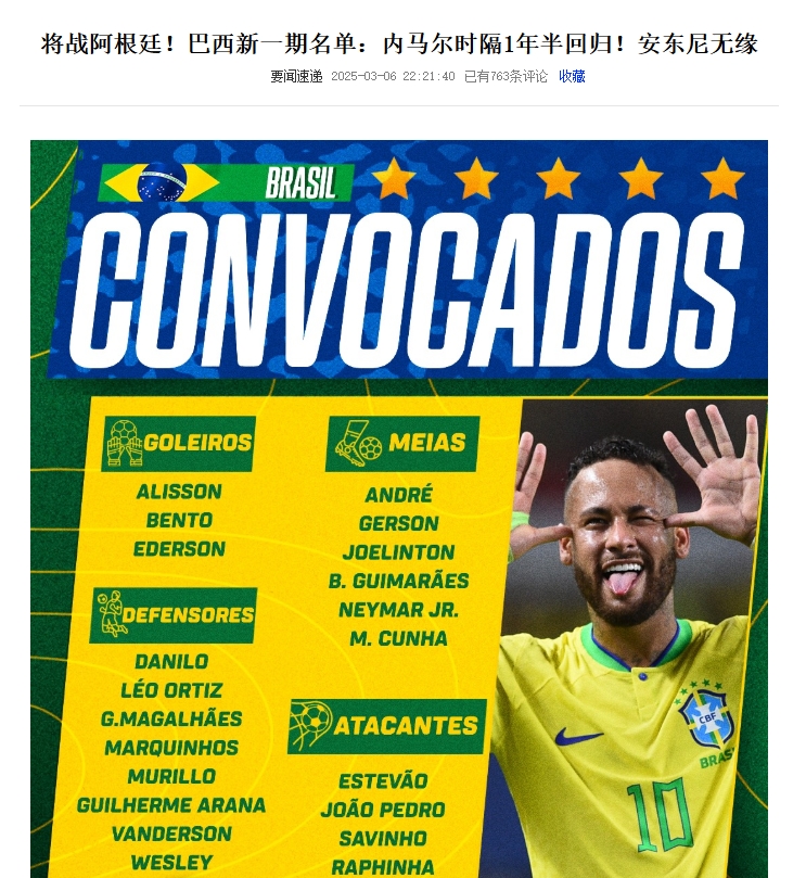 2025-03-07 20:11:24世體:內(nèi)馬爾重返巴西國家隊,拉菲尼亞將讓出10號球衣