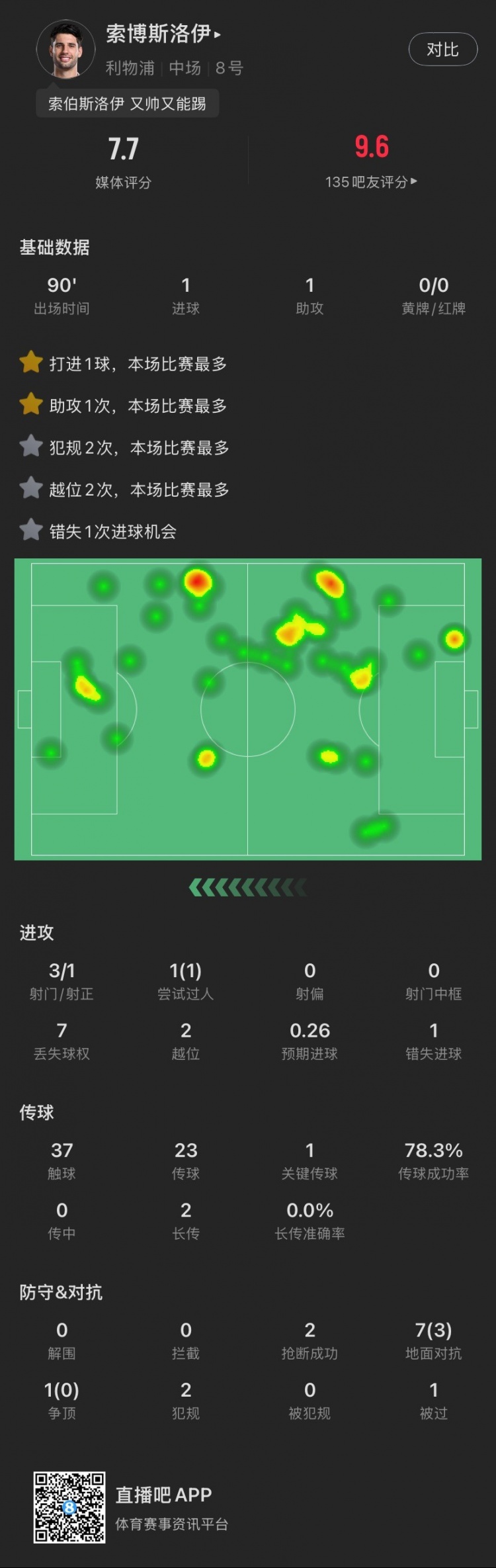 2025-02-24 15:05:11索博本場:傳射建功,越位2次全場最多,2搶斷,8次對抗成功3次