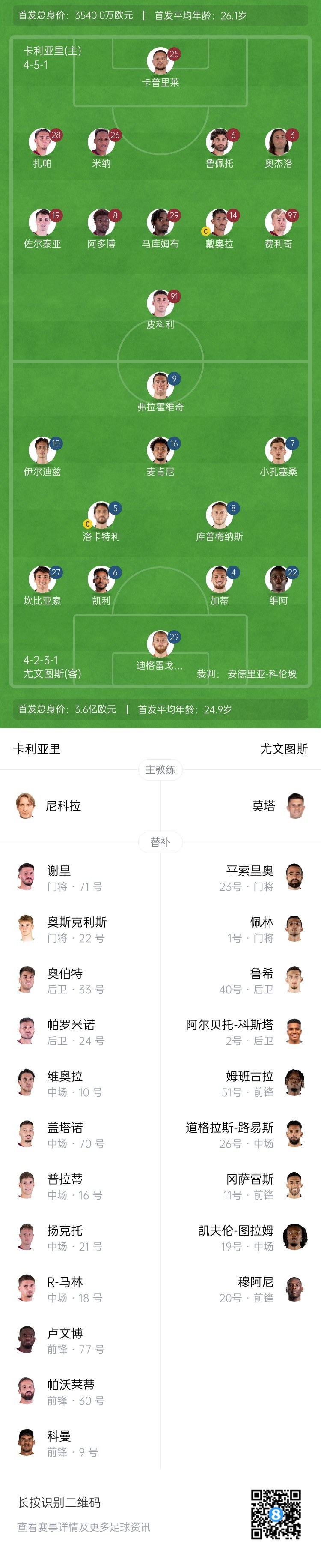 2025-02-24 15:05:15尤文vs卡利亞里首發:DV9、伊爾迪茲、孔塞桑先發,維阿出戰